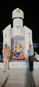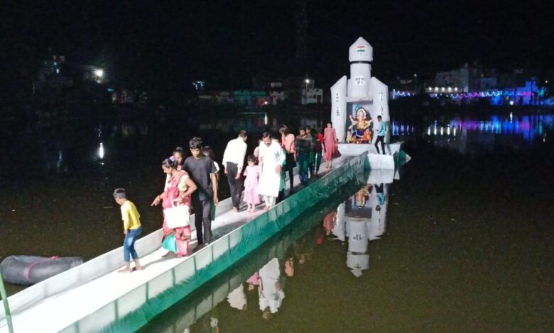 बनिया तालाब में 12 फीट गहरे पानी में 15 फीट ऊंचे और 7 फीट चौड़ा बनायी गयी चन्द्रयान की झांकी