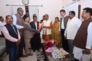 धमतरी अनुसूचित जनजाति शासकीय सेवक विकास संघ छत्तीसगढ़ द्वारा छत्तीसगढ़ के प्रथम आदिवासी मुख्यमंत्री विष्णुदेव साय से भेंटकर आदिवासी समाज के विधायकों के सम्मान समारोह हेतु मुख्य अतिथि के रूप में माननीय सुश्री लता उसेंडी पूर्व मंत्री, नीलकंठ टेकाम विधायक केशकाल, चैतराम अटामी विधायक दंतेवाड़ा, किरण देव विधायक बस्तर, महेश गागडा पूर्व मंत्री की विशेष उपस्थिति में आमंत्रित किए। सम्मान समारोह दिनांक 18 दिसंबर को पंडित दीनदयाल ऑडिटोरियम रायपुर में आयोजित होगा। इस अवसर पर संघ के प्रांताध्यक्ष आर एन ध्रुव, प्रांतीय उपाध्यक्ष शिवकुमार कंवर, प्रांतीय कोषाध्यक्ष एन आर चंद्रवंशी, प्रांतीय पदाधिकारीगण श्री पवन नेताम, जी.एस. मंडावी इंजीनियर इन चीफ, मनहरण चंद्रवंशी, जिलाध्यक्ष बिलासपुर आर.सी. ध्रुव जिलाध्यक्ष मुंगेली अकत ध्रुव,अश्वनी कुंजाम विशेष रूप से उपस्थित थे।