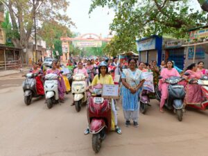 धमतरी लो वोटर टर्न आउट वाले मतदान केंद्रों में मतदान का प्रतिशत बढ़ाने आज कलेक्टर एवं जिला निर्वाचन अधिकारी सुश्री नम्रता गांधी के साथ बड़ी संख्या में महिलाओं ने स्कूटी चलाकर जिले के मतदाताओं को जागरूक करने निकलीं।