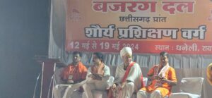 धमतरी। विश्व हिन्दू परिषद, बजरंग दल जिला के युवाओं ने शौर्य, वीरता, साहस का राजधानी में उत्कृष्ट प्रदर्शन किया साथ ही शौर्य यात्रा बीरगांव में निकाला। रात्रि में प्रान्त एवं राष्ट्रीय पदाधिकारियों के समक्ष अखाड़ा का प्रस्तुतिकरण किया जिसमें तलवारबाजी ,येष्टि, दण्ड, नान चाक, ताइक्वांडो, युद्व कला का प्रदर्शन किया।एक बजरंगी को दस बजरंगियों से लड़ाया गया, एक से एक, एक को दो और एक को समूह से सभी घातक हथियारों से लड़वाया गया, युद्ध कला के दौरान रायफल चलाने का भी प्रशिक्षण दिया गया, राजधानी बजरंगियों के जय श्री राम के जयकारों से गूंज उठा। पथ संचलन के दौरान कड़ी पुलिस प्रशासनिक व्यवस्था की गई थी। जिसमे लगभग 100 से अधिक विभाग के अधिकारी और कर्मचारियों को ड्यूटी पर तैनात किया गया था, धमतरी जिले के बजरंगियों का उत्साहवर्धन करने के लिए जिले से जिला अध्यक्ष संदीप अग्रवाल, जिला कार्यकारी अध्यक्ष दीपक सिंह ठाकुर, जिला मंत्री रामचंद्र देवांगन, गौरक्षा प्रमुख़ मानव जी एवं प्रखंड से चित्रेश साहू भी सम्मिलित हुए एवं प्रांतीय, राष्ट्रीय पदाधिकारियों से मुलाकात भी की साथ ही विभिन्न विषयों पर चर्चा की गई।