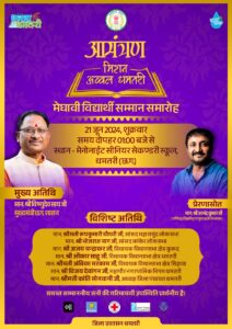 धमतरी प्रदेश के मुख्यमंत्री श्री विष्णुदेव साय 21 जून को धमतरी जिले के प्रवास पर रहेंगे। वे रायपुर से हेलीकाफ्टर के जरिए रवाना होकर मुजगहन स्थित हेलीपेड पहुंचेंगे। इसके बाद वे कार द्वारा मेनोनाईट इंग्लिश स्कूल धमतरी में आयोजित मेधावी विद्यार्थी सम्मान समारोह में बतौर मुख्य अतिथि शिरकत करेंगे। इस दौरान वे सम्मान, प्रशस्ति पत्र वितरण, मेधावी छात्रों को चेक वितरण करेंगे। कार्यक्रम के बाद मुख्यमंत्री श्री साय राजधानी रायपुर के लिए प्रस्थान करेंगे।