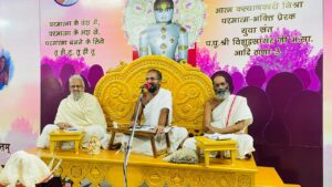 पार्श्वनाथ जिनालय इतवारी बाजार में चातुर्मास प्रवचन रोजाना जारी है.परम पूज्य विशुद्ध सागर जी म.सा. ने अपने आज के प्रवचन में फरमाया कि जीवन रूपी बगिया में सद्गुण रूपी ऐसा फूल खिलाना है जिसके सुगंध रूपी प्रभाव से सब प्रभावित होकर खींचे चले आए। अगर जीवन में परमात्मा का साथ हो तो कोई चिंता नहीं करनी चाहिए। संसार में ऐसा कोई उम्र नहीं है जिसमें किसी की मृत्यु न हुई हो। इसलिए अपने जीवन के हरपल को एक अवसर मानकर उसका सदुपयोग करना चाहिए क्योंकि कब जीवन का के अंत क्षण आ जाए पता नहीं। ज्ञानी भगवंत कहते है जान और मृत्यु के बीच का सामान्य जीवन है। इस जीवन का हरपल एक स्वर्णिम अवसर है। इस जीवन में हमे जो समय, समझ और शक्ति मिला है अगर इसका सदुपयोग नहीं करेंगे तो यह समाप्त हो जाएगा। हमारी चाह अर्थात हमारी इच्छा ही हमारे दुख का कारण है। हमारा प्रयास प्रतिदिन अपने विकारों को दूर करते हुए अपनी आत्मा के निकट आने के लिए होना चाहिए। क्योंकि प्रयास ही सफलता की सीढी है। प्रयास करते समय भले ही कुछ समय के लिए हम रुक जाए लेकिन सफलता मिलने तक हार नहीं मानना चाहिए। दूसरो को जागृत करते हुए स्वयं को भी जागृत रखना पड़ता है। हमेशा अपने बेस्ट को बैटर करने का अर्थात अच्छे को और अच्छा करने का प्रयास करना चाहिए। किसी भी स्थान पर किया गया पाप से तीर्थ स्थान में जाकर हम मुक्त हो सकते है लेकिन तीर्थ स्थान में किए गए पाप से कभी मुक्त नहीं हो सकते। उसे भोगना ही पड़ेगा। इस संसार में चारो ओर केवल पाप ही पाप है। और इस पाप के ताप और संताप से बचने के लिए स्वाध्याय करना चाहिए। इसीलिए श्रावक के छह सामान्य कर्तव्य में तीसरा कर्तव्य स्वाध्याय बताया गया है । गुरु उस निशान की तरह होते है जो स्वयं एक स्थान में रहकर शिष्य रूपी राहगीर को सही राह दिखाते है। जो इंसान उबरने वाले का सहारा लेता है वो उबर जाता है और जो डूबने वाले का सहारा लेता वो डूब जाता है। उसी तरह हमे भी इस संसार सागर से उबरने के लिए परमात्मा या गुरु का सहारा लेना चाहिए। परमात्मा और गुरु की निंदा करने वाला कभी आगे नहीं बढ़ सकता। परमात्मा और गुरु के न होने पर स्वाध्याय हमे सत्य का ज्ञान करा सकता है। और इसी के माध्यम से परमात्मा तक हम पहुंच सकते है। आत्मा से परमात्मा बनने का मार्ग संसार के सभी धर्म शास्त्रों में बताया गया है। जब हम उसे श्रवण कर अपने जीवन में उतर लेंगे तो परमात्मा बनने की ओर आगे बढ़ पाएंगे। स्वयं को अच्छे से अच्छा बनाने के लिए स्वाध्याय आवश्यक है.