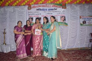 लेडीज क्लब धमतरी के तत्वाधान में अंतर्राष्ट्रीय महिला दिवस का रंगारंग सांस्कृतिक कार्यक्रम नारी रत्न अवॉर्ड ,पूर्व एवं वर्तमान अध्यक्ष सम्मान और सबसे महत्वपूर्ण सम्मान लेडी ऑफ द ईयर अवार्ड के साथ संपन्न हुआ कार्यक्रम के प्रारंभ में कार्यक्रम के मुख्य अतिथि क्लब संचालिका उषा गुप्ता , अध्यक्ष श्रद्धा कश्यप ,विशिष्ट अतिथि बलजीत आनंद ने दीप प्रज्वलित कर मां सरस्वती के चित्र पर माला अर्पण तथा लेडिस क्लबl प्रार्थना, विश्व शांति हेतु मौन के साथ शुभारंभ किया ।स्वागत की परंपरा का निर्वहन करते हुए मंच पर विराजित सम्माननीय अतिथि जनों का अभिनंदन काजल सिंहा ,और साधना साहू, गायत्री साहू ने किया।अपने-अपने उद्बोधन के माध्यम से अतिथि जनों ने अंतर्राष्ट्रीय महिला दिवस की के महत्व ,उद्देश्य और सार्थकता पर विस्तार से प्रकाश डाला। कामिनी कौशिक, ज्योति गुप्ता,नीता अजमानी और संतोष लखोटिया ने कविता और गीत के माध्यम से अंतर्राष्ट्रीय महिला दिवस के विषय में खूबसूरत प्रस्तुति दी मंच और सभागार तालिया से गूंज उठी जब सीमा हरदेल ,गायत्री साहू ,देविका साहू, शुभ्रा गौर और काजल सिंहा ने फिल्मी गीतों के रीमिक्स में नृत्य कर सबका मन झूमने के लिए रंगीन कर दिया। आयोजन में जब लेडी ऑफ द ईयर का अवार्ड माधवी शर्मा को प्रदान किया गया तब बधाईयों व शुभकामनाओं ने माधवी शर्मा को भरपूर कर दिया। क्लब संचालिका उषा गुप्ता ने सभी बहनों को नारी रत्न अवार्ड देते हुए सबकी विशेषताओं का बखूबी से बयां किया तथा सभी बहनों ने अपने अपने भावनाओं को गीत गजल और नृत्य के कार्यक्रम का सफल संचालन डॉ भारती राव तथा आभार आशा गुप्ता ने दिया। कार्यक्रम को सफल बनाने में कामिनी कौशिक संतोष लखोटिया मंजू महावर , लीला शर्मा, चंदा शर्मा,आशागुप्ता माधवी शर्मा रेनू खनूजा, बबली राजोरिया रचना नायडू तनुजा सेन, मंजू सेन पूनम सिंह सीमा हरदेल सुबरा गौर आरती कौशिक ज्योति गुप्ता बिना नायडू शिरीन हाशमी नीता रणसिंह नीता अजमानी देविका साहू, बीथीका विश्वाश दीपा लोढ़ा सहित बड़ी संख्या में मातृ शक्तियां उपस्थित थीं।