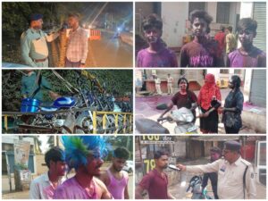 पुलिस अधीक्षक आंजनेय वार्ष्णेय के निर्देश पर उप पुलिस अधीक्षक यातायात सुश्री मोनिका मरावी के मार्गदर्शन में होली पर्व के मद्देनजर सड़क सुरक्षा को सुनिश्चित करने हेतु जिला में होलिका दहन एवं होली दिवस पर विशेष वाहन चेकिंग पाईंट लगाया गया जिसमें स्वयं पुलिस अधीक्षक मौके पर पहुंचकर यातायात नियमों का पालन नही करने वाले वाहन चालकों पर विशेष कार्यवाही करने निर्देशित किया गया था जिसके परिप्रेक्ष्य में विशेषकर रंग गुलाल खेलकर हुड़दंग करते हुए दोपहिया वाहन में तीन सवारी चलने वाले एवं शराब सेवन कर वाहन चलाने वाले वाहन चालकों पर कार्यवाही की गई चेकिंग के दौरान तीन सवारी चलने वाले वाहनों को पकड़कर यातायात सिटी कोतवाली, एवं रूद्री थाना में सुरक्षार्थ रखा गया साथ ही 16 शराबी वाहन चालकों का प्रकरण तैयार कर माननीय न्यायालय पेश किया गया जिसमें से 13 वाहन चालकों से 1,30,000 रूपये अर्थदण्ड से दण्डित किया गया। थानों में सुरक्षार्थ रखे वाहनों को होली पर्व के उपरांत सभी वाहन चालकों को दोपहिया वाहन में तीन सवारी, बिना हेलमेट, बिना लायसेंस के नही चलने समझाईश देकर छोड़ा गया।