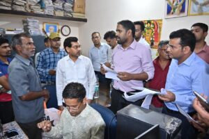 कलेक्टर श्री मिश्रा ने आज मगरलोड के ग्राम भेंडरी स्थित सेवा सहकारी समिति में हो रहे किसानों के पंजीयन का निरीक्षण किया। उन्होंने मौके पर उपस्थित समिति के मैनेजर से समिति में अब तक किए गए किसानों के पंजीयन और पंजीयन प्रक्रिया के बारे में जानकारी ली। साथ ही एक किसान का पंजीयन अपने समक्ष करवाकर भी देखा। समिति में मौजूद किसान श्री रोहित साहू ने कलेक्टर को बताया कि पहले उसे किसान सम्मान निधि की राशि प्राप्त हो रही थी, लेकिन बीते कुछ सालों से राशि नहीं मिल रही है.। कलेक्टर उक्त किसान को राशि दिलाने की कार्यवाही करने के निर्देश संबंधित अधिकारियों क़ो दिए। कलेक्टर ने पंजीयन के समय हो रही किसी तरह की समस्या के बारे में भी पूछा।