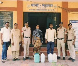 पुलिस अधीक्षक द्वारा धमतरी जिले में अवैध कारोबारियों एवं नशा के कारोबारियों के विरुद्ध कार्यवाही करने के निर्देश दिये गये हैं। जिसके परिपालन में नव पदस्थ थाना प्रभारी भखारा उपनिरी उमाकांत तिवारी द्वारा अपने थाना स्टॉफ की अलग-अलग टीम बनाकर जिसमें महिला स्टॉफ को साथ लेकर मुखबिर से मिली सूचना पर आरोपिया रामेश्वरी देशलहरे पति सोनउ राम 49 वर्ष कोपेडीह के कब्जे से कुल 22 लीटर इसी प्रकार आरोपी रमेश कुमार बंजारे पिता दशरथ बंजारे 32 वर्ष कोपेडीह के कब्जे से कुल 20 लीटर हाथ भट्टी से बना महुआ शराब को अवैध रूप से शराब रखकर बिकी करने की सुचना पर रेड कार्यवाही किया मौके पर दोनो आरोपियो के कब्जे से कुल 4 नग प्लास्टिक जरकीन जिसमें हाथभट्ठी से बना महुआ शराब कुल जुमला 42 लीटर जुमला किमती 4200 रूपये महुआ शराब को बिक्री करने रखे हुये मिला जिसे जप्त कर आरोपी रामेश्वरी देशलहरे के विरूद्ध आरोपी रमेश कुमार बंजारे के विरुध्द धारा 34 (2), आबकारी एक्ट की कार्यवाही की गई है। तथा गांव के आसपास के खेतो में आरोपियों द्वारा छिपाकर रखे महुआ लाहन करीबन 30-35 क्विंटल को मौके पर नष्ट किया गया।संपूर्ण कार्यवाही में थाना प्रभारी भखारा उपनिरी. उमाकांत तिवारी, प्रआर अश्वनी बंजारे,सीताराम नारंग,मनोहर साहु,खिनेश साहु आर खुमान साहू, हरिशंकर सिन्हा,गजेन्द्र टंडन,संजय ओगरे, सुदर्शन दीवान, गोपाल साहु, अवनीश विश्वकर्मा, धनसाय भारद्वाज, चंद्रहाश मनहरे,नीरज ध्रुव, मआर०अमृता मतस्यपाल,सोनिया साहु, संतोषी साहू थाना भखारा जिला धमतरी का योगदान रहा।