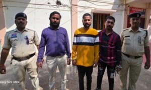 थाना सिटी कोतवाली को मुखबीर से सूचना मिली की सिटी पार्क के पास विंध्यवासिनी वार्ड धमतरी के पास कुछ व्यक्तियों द्वारा अपने पास प्लास्टिक झिल्ली में अंदर अवैध मादक पदार्थ हेरोईन (चिट्टा) रखकर बिक्री कर रहे है की सूचना पर तत्काल कोतवाली पुलिस द्वारा सिटी पार्क के पास विंध्यवासिनी वार्ड धमतरी के पास जाकर घेराबंदी कर 3 आरोपियों सूरज उर्फ श्रवण रजक पिता गजानंद रजक 27 वर्ष नयापारा वार्ड बजरंग चौक धमतरी एवं लवली उर्फ अभिनव तिवारी पिता विधासागर तिवारी 35 वर्ष आमातालाब रोड गौरा चौरा के पास धमतरी एवं राहूल निर्मलकर उर्फ सिन्कु पिता स्व रोहित निर्मलकर 26 वर्ष इंद्रानगर वार्ड धमतरी को पकड़कर आरोपियों के कब्जे से हेरोईन (चिट्टा)प्लास्टिक झिल्ली में बंधा हुआ मादक पदार्थ हेरोईन (चिट्टा) जिसका वजन पॉलीथीन सहित 1 ग्राम कीमती 10,000 रूपये एवं 3 नग मोबाईल कीमती 30,000 रूपये,बिक्री रकम 73,00 जुमला कीमती 47,300.रूपये को जप्त कर आरोपी के विरूद्ध थाना सिटी कोतवाली में धारा 21(A), एन०डी० पी०एस० एक्ट का अपराध पंजीबद्ध कर आरोपियों को विधिवत गिरफ्तार कर न्यायिक रिमाण्ड पर भेजा गया है। उक्त कार्यवाही में थाना सिटी कोतवाली से सउनि.संतोषी नेताम,आर.डायमंड यादव,चंदर जमदार,मुकेश सिन्हा,भूपेंद्र पदमशाली, रघुराज कर्ष,गणेश नेताम, नागेंद्र सिंग का योगदान रहा।
