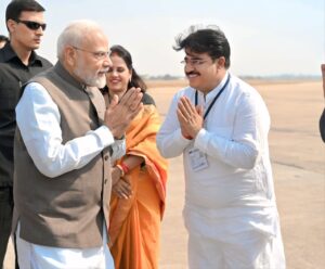 धमतरी-प्रधानमंत्री नरेंद्र मोदी प्रदेश के बिलासपुर में आयोजित विकास परियोजनाओं के शुभारंभ के छत्तीसगढ़ पहुंचे जहां एयरपोर्ट पर भाजपा प्रदेश महामंत्री व धमतरी निगम महापौर रामू रोहरा ने उनका आत्मीय स्वागत किया।