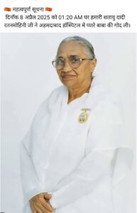 ब्रह्माकुमारीज की प्रमुख राजयोगिनी दादी रतनमोहिनी का निधन, पूरा जीवन समाज कल्याण को रहा समर्पित