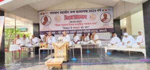 कैवल्यधाम तीर्थ प्रेरिका परम पूज्य निपूर्णा श्री जी महाराज साहेब की शिष्या परम पूज्य हंसकीर्ति श्री जी महाराज साहेब ने फरमाया कि परमात्मा के पांच कल्याणक च्यवन कल्याणक, जन्म कल्याणक, दीक्षा कल्याणक, केवलज्ञान कल्याणक और निर्वाण कल्याणक होते है। परमात्मा के जन्म के समय सौधर्मेंद्र देव उन्हें मेरु पर्वत पर ले जाकर उनका जन्म महोत्सव मनाते है। भगवान के बचपन का नाम वर्धमान था। भगवान वर्धमान से महावीर कैसे बने। इसके लिए शास्त्रों के माध्यम से बताया गया है कि परमात्मा जब 8 साल के थे। तब बालक्रीड़ा करते समय एक देव परीक्षा लेने आए। फिर भगवान के साथ क्रीड़ा करते हुए भगवान को अपने कंधे पर उठा लिए और अपना शरीर 7 ताड़ जितना लंबा कर लिया। फिर भी परमात्मा बिल्कुल भी नहीं घबराए, और उस देव के सर पर एक मुष्टि का प्रकार किया। वो देव वही पर धराशाई हो गया। और अपने वास्तविक रूप में आकर परमात्मा से क्षमा मांगकर अपने देव लोक में वापस में चला गया।
