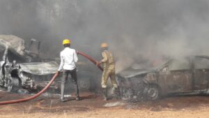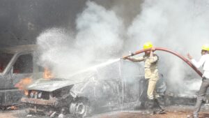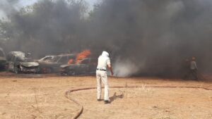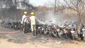 पुलिस लाइन में रखे वाहनों में आगजनी, कार मोटरसाइकिल सहित लगभग 30 से ज्यादा वाहन जल कर खाक