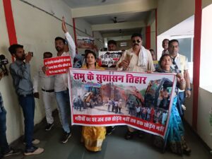 :- जवाब के बीच जल सभापति अखिलेश सोनकर कविता पढऩे लगे जिसका विपक्ष ने विरोध किया।