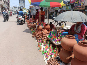 धमतरी। आज अक्ती पर्व को लेकर बच्चों में विशेष कर उत्साह नजर आ रहा है। इस बार अक्षय तृतीया पर शुभ मुहूर्त में कई जोड़े परिणय सूत्र में बंधेंगे वहीं बच्चों द्वारा परंपरानुसार गुडड्े -गुडिय़ों की शादी करायी जा रही है। पर्व को लेकर पिछले कई दिनों से मिट्टी से बने गुडड्े -गुडिय़ों की बिक्री हो रही है। आज अक्ती पर्व पर वर्षों पुरानी परंपरा के अनुसार ग्रामीण क्षेत्रों में ठाकुर देव की पूजा अर्चना की गई। ग्रामीण ठाकुर देव को प्रसन्न करने अक्ती पर पूजा अर्चना कर दोना चढ़ाते हैं। गांव व परिवार की खुशहाली के लिए कामना करते है वहीं बुजुर्गो ने बताया कि उनके पूर्वजों से यह पंरपरा चली आ रही है जिसे वे आगे बढ़ा रहे हैं। आज के दिन बच्चे मिट्टी के दुल्हा-दुल्हन का ब्याह रचाते हैं और टिकावन की रस्म भी पूरी की जाती है।