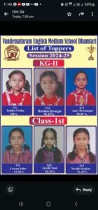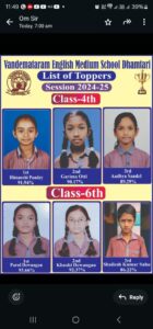 वंदेमातरम् इंग्लिश मिडियम स्कूल का वार्षिक परीक्षा परिणाम रहा उत्कृष्ट