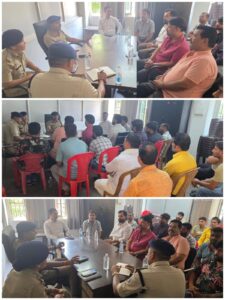 एसपी के निर्देश पर एएसपी द्वारा डीएसपी, एसडीएम,थाना प्रभारी की उपस्थिति में लॉज,होटल, ढाबा संचालकों की ली गई बैठक