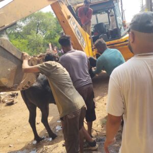 दो दिन से नाले में फंसे बैल को पार्षद कुशल लोढ़ा, गौसेवकों व निगम टीम के सहयोग से निकाला गया सुरक्षित
