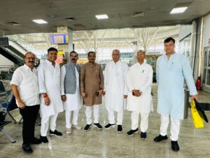 ओबीसी घोषणापत्र से जुड़े मुद्दों पर परामर्श बैठक में शामिल होने पूर्व मुख्यमंत्री भूपेश बघेल व अन्य विधायको के साथ विधायक ओंकार साहू हुए दिल्ली रवाना