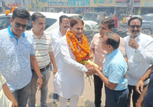 छग पर्यटन मंडल अध्यक्ष नीलू शर्मा का नया बस स्टैण्ड के पास हुआ भव्य व आत्मीय स्वागत