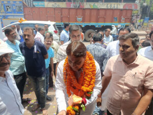 जैसे ही श्री शर्मा की कार पहुंची आतिशबाजी, पटाखे व ढोल नंगाड़े बजाकर उनका भव्य स्वागत गणमान्य नागरिकों द्वारा किया गया। श्री शर्मा को फूल मालाओं से लाद दिया गया। आत्मीय स्वागत से श्री शर्मा भाव विभोर हो गये और सभी का आभार माना। इस दौरान श्री शर्मा ने सभी से भेंटकर परिचय जाना।