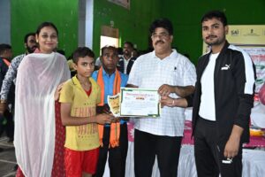 कुश्ती संघ अध्यक्ष श्री लक्ष्मण साहू ने कहा कि जिला प्रशासन की इस पहल से खेल अब गांव-गांव तक पहुंच रहा है। जिले में आयोजित कुश्ती प्रतियोगिता में बच्चों ने अच्छा प्रदर्शन कर राज्य एवं राष्ट्रीय स्तर पर जाने की राह खोली है। इस अवसर पर कुश्ती में राष्ट्र स्तर पर अपनी प्रतिभा का प्रदर्शन करने के लिए चयनित खुशी साहू, रूचि साहू, उदय सोनकर, कुदीप कुमार और शौर्य राव जाधव को मेडल और प्रमाण पत्र प्रदान कर सम्मानित किया। अतिथियों ने समर कैंप में बेस्ट परारमेंस देने वाले वाले खिलाड़ियों डेविना सिन्हा, पारस कुम्भकार को शील्ड व प्रमाण पत्र प्रदान और बालिका वर्ग की जान्हवी सोनकर, खुशी साहू रूचि साहू तथा बालक वर्ग से उदय सोनकर, कुलदीप कुमार ध्रुव, योगेश कुम्भकार को शील्ड व प्रमाण पत्र प्रदान कर सम्मानित किया। इस अवसर पर कार्यक्रम में अशोक सिन्हा, कराते संघ, सुनील निषाद वेटलिफ्टिंग संघ, रितिका यादव एथलेटिक संघ, वरिष्ठ प्रशिक्षक गोविंद सार्वा, हेमंत चक्रधारी, विकास सिंह ठाकुर, लीना यादव, राजकुमार सिन्हा, टिकेश्वर निर्मलकर, वीरेन्द्र मीनपाल,दुर्गेश पटेल, उदय यादव, जानवी महावर, अंजलि फुटान कार्यक्रम का संचालन अजय नामदेव ने किया एवं जेपी देव सहायक खेल अधिकारी ने आभार व्यक्त किया।