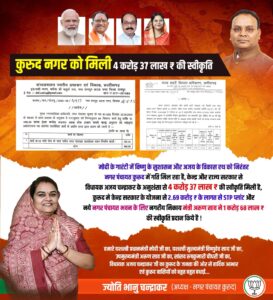 मोदी की गारंटी में विष्णु देव साय के सुशासन और विधायक अजय चंद्राकर के विकास रथ को निरंतर नगर पंचायत कुरूद में गति मिल रही है.केन्द्र और राज्य सरकार से विधायक अजय चन्द्राकर की अनुशंसा से 4 करोड़ 37 लाख की स्वीकृति मिली है.कुरूद मे केन्द्र सरकार के योजना से 2.69 करोड़ के लागत से एसटीपी प्लांट, और नये नगर पंचायत भवन के लिए नगरीय निकाय मंत्री अरूण साव ने 1 करोड़ 68 लाख की स्वीकृति प्रदान किया गया है.कुरूद नगर पंचायत मे विकास कार्यों का सिलसिला निंरतर जारी है, नगर पंचायत अध्यक्ष ज्योति भानु चन्द्राकर ने कुरूद वासियों को बधाई देते हुए कहा वर्तमान परिषद के द्वारा कुरूद में निरंतर विकास कार्य देखने को मिलेगा, कुरूद व्यवस्थित और सुंदर दिखेगा, नगर में सौंदर्यीकरण और रोड ट्रैफिक को ठीक किया जा रहा है. विधायक अजय चन्द्राकर विकास कार्यों के लिए निरंतर प्रयासरत रहते है. कुरूद मे सर्व सुविधा युक्त नगर पंचायत कार्यालय भवन बनने जा रहा है.मुख्यमंत्री एवं विभागीय मंत्री ने 1 करोड़ 68 लाख की स्वीकृति प्रदान किये है, उसी प्रकार विधायक अजय चन्द्राकर एवं सांसद रूपकुमारी चौधरी के प्रयास से नगर के गंदे पानी को साफ़ कर पुनः गार्डन एवं कृषि कार्य के उपयोग हेतु एसटीपी प्लांट के 2 करोड़ 69 लाख की स्वीकृति मिली है.नगर पंचायत अध्यक्ष ज्योति भानु चन्द्राकर ने प्रधानमंत्री मुख्यमंत्री,उपमुख्यमंत्री अरूण साव , सांसद रूपकुमारी चौधरी, विधायक अजय चन्द्राकर का कुरूद के जनता की ओर से धन्यवाद ज्ञापित किया है.