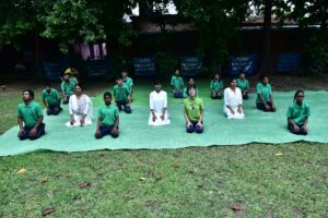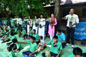सार्थक एवं नेहरू स्कूल के बच्चों ने योग व भक्ति के संगम से रचा अनुपम दृश्य