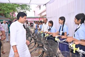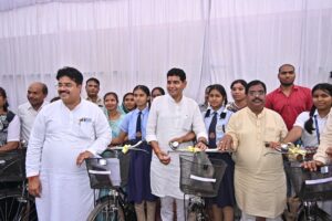 स्कूली बच्चों का तिलग लगाकर किया स्वागत, बांटी पुस्तकें, गणवेश एवं सायकिलें