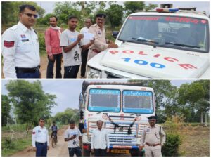 धमतरी। पुलिस अधीक्षक सूरज सिंह परिहार के निर्देशानुसार उप पुलिस अधीक्षक (यातायात) सुश्री मोनिका मरावी के नेतृत्व में यातायात पुलिस द्वारा जिले में सुगम एवं सुरक्षित यातायात व्यवस्था सुनिश्चित करने हेतु निरंतर प्रयास किए जा रहे हैं। इसी क्रम में धमतरी पुलिस यातायात द्वारा ग्राम कातलबोड़ (विकासखंड- कुरूद) में स्कूली बच्चों की सुरक्षा को लेकर ग्रामीणों द्वारा की गई शिकायत पर तत्काल संज्ञान लेते हुए कार्यवाही की गई।ग्रामीणों एवं ग्राम सरपंच श्री मिलन साहू द्वारा यह शिकायत दर्ज कराई गई थी कि स्कूल समय के दौरान गांव से होकर गुजरने वाले भारी हाइवा वाहन बच्चों की सुरक्षा के लिए खतरा बन रहे हैं।जिस पर पुलिस अधीक्षक के तत्काल कार्यवाही के निर्देश पर यातायात पुलिस के सउनि. रामकृष्ण साहू एवं प्रआर. देवेन्द्र गजेन्द्र द्वारा मौके पर पहुँचकर कार्यवाही की गई। पुलिस टीम द्वारा स्कूल समय में अनावश्यक रूप से चल रहे 8 हाइवा वाहनों का मौके पर चालान कर 12,000 समन शुल्क वसूला गया। साथ ही वाहन चालकों एवं मालिकों को स्पष्ट रूप से निर्देशित किया गया कि स्कूल समय के दौरान इस मार्ग पर भारी वाहनों का संचालन न करें। भविष्य में नियमों का उल्लंघन करने पर कठोर वैधानिक कार्यवाही की चेतावनी भी दी गई।