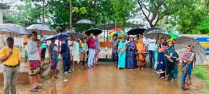 बेंद्रानवागांव स्कूल मे बरसते पानी में धरने पर बैठे छात्र-छात्राएं, पालक व जनप्रतिनिधि