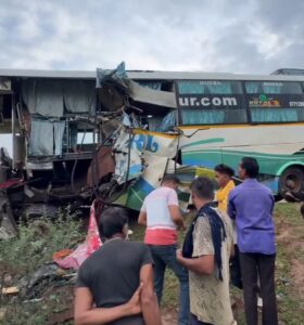 तेज रफ्तार बस ने हाइवा को मारी जबरदस्त ठोकर, 3 की मौत, 5 गंभीर