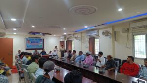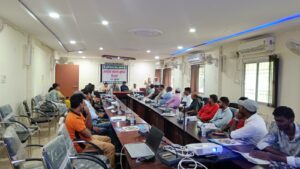 धमतरी 10 जुलाई 2025/ कृषि विज्ञान केन्द्र एवं मछली पालन विभाग धमतरी के संयुक्त तत्वधान में आज कृषि विज्ञान केन्द्र धमतरी में कृषक संगोष्ठी का आयोजन किया गया। वरिष्ठ वैज्ञानिक एवं प्रमुख डॉ. ईश्वर सिंह के मार्गदर्शन में राष्ट्रीय मत्स्य कृषक दिवस सह तिलापिया कलस्टर हेतु एक दिवसीय कृषक संगोष्ठी कार्यक्रम कार्यक्रम के मुख्य अतिथि पिछड़ा वर्ग आयोग के अध्यक्ष श्री नेहरू निषाद ने मत्स्य कृषक दिवस की बधाई दी। उन्होंने कृषकों को कहा कि मछली पालन के क्षेत्र में बेहतर कार्य करने के लिए वैज्ञानिक पध्दति को अपनाकर उचित अनुपात में मछली प्रजाति को संचित कर बेहतर कार्य करने की आवश्यकता है। प्रदेश अध्यक्ष मछुआरा प्रकोष्ठ श्री कृष्णा हिरवानी ने कहा कि मत्स्य पालक अधिक उत्पादन के लिए विभागीय योजनाओं का लाभ अवश्य उठायें और मत्स्य उत्पादन के क्षेत्र में बेहतर कार्य कर सकते है।