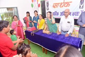 संस्थान में आयोजित इस विशेष कार्यक्रम में अरविंद भाई दोशी, भावना बेन दोशी, हेमल दोशी, श्रीमती वर्षा खंडेलवाल और सना खंडेलवाल उपस्थित रहे। बच्चों ने स्वागत गीत और खूबसूरत नृत्य के माध्यम से मेहमानों का अभिनव तरीके से स्वागत किया।इसके पश्चात प्रत्येक बच्चे को लाल टी-शर्ट भेंट स्वरूप प्रदान की गई। बच्चों ने मुस्कराते हुए ‘थैंक्यू’ कहा और उनके चेहरे पर झलकती प्रसन्नता ने पूरे वातावरण को उल्लासमय बना दिया।कार्यक्रम के दौरान भावना बेन ने वीडियो कॉल के माध्यम से प्रतिमा बेन भूता को बच्चों से साक्षात मिलवाया। बच्चों ने हाथ हिलाकर गर्मजोशी से उनका अभिवादन किया। इस दृश्य ने हर किसी का हृदय छू लिया। प्रतिमा बेन भूता ने कहा फेसबुक पर संस्था की पोस्ट देखकर मैं इन बच्चों से मिलना और उन्हें कुछ उपहार देना चाहती थी। आज यह सपना सच हो गया।संस्था की अध्यक्ष डॉ. सरिता दोशी ने सहयोगियों के प्रति आभार व्यक्त करते हुए कहा पिछले वर्ष कलेक्टर रहीं नम्रता गांधी ने बच्चों को अपने जन्मदिन पर लाल टी-शर्ट व नीला लोअर उपहार में दिए थे। बच्चे इन कपड़ों में बेहद सहज और आत्मविश्वासी महसूस