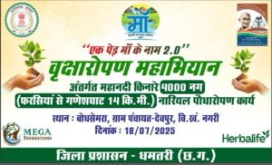 एक पेड़ माँ के नाम” : महानदी जागरूकता अभियान के तहत वृक्षारोपण महाभियान का आयोजन, 4000 नारियल पौधे रोपे जाएंगे