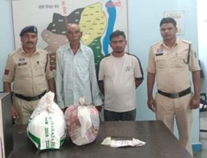 जिले में एसपी के निर्देश पर जिले में मादक पदार्थों के तस्करों के विरुद्ध चलाए जा रहे सतत अभियान के अंतर्गत धमतरी पुलिस को लगातार सफलता मिल रही है,कुरूद पुलिस ने भी गांजा तस्करों के विरुद्ध कार्यवाही को अंजाम दिया है.थाना कुरूद पुलिस को सूचना मिली कि मोंगरा रोड पर दो व्यक्ति थैलों में मादक पदार्थ गांजा लेकर अवैध रूप से ले जा रहे हैं। उक्त सूचना की तस्दीक हेतु पुलिस टीम तत्काल रवाना होकर मौके पर पहुंची. पुलिस ने दो संदिग्ध व्यक्तियों को पकड़ा और गवाहों के समक्ष पूछताछ व तलाशी के दौरान दोनों के पास से कुल 7.35 किलोग्राम अवैध गांजा बरामद किया गया.गिरफ्तार आरोपियों में उमेश कुमार यादव 27 वर्ष, भाठापारा बस स्टैंड, वार्ड क्र. 2, ग्राम छाती, थाना कुरूद, तुला राम कंवर 52 वर्ष,कंवरपारा, वार्ड क्र. 16, ग्राम छाती, थाना कुरूद शामिल है.उमेश कुमार यादव के कब्जे से गांजा 4.14 किग्रा (कीमत लगभग 49,000/-रूपये),तुला राम कंवर के कब्जे से गांजा 3.21 किग्रा (कीमत लगभग 36,000 रूपये)मोबाइल फोन-1 नग (अनुमानित कीमत 10,000 रूपये )नगद 7,500 रूपये,कुल जब्ती- 1,02,500 रूपये रही.आरोपियों के विरुद्ध थाना कुरूद में अपराध क्रमांक 186/25, धारा 20(ख) एनडीपीएस एक्ट के तहत मामला दर्ज कर दोनों को न्यायिक रिमांड पर जेल भेजा गया है।