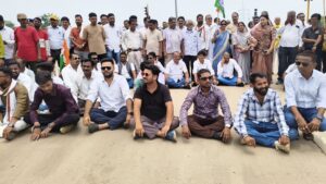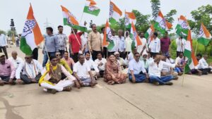 पूर्व मुख्यमंत्री भूपेश बघेल के पुत्र के खिलाफ ईडी द्वारा की गई कार्रवाई के विरोध में कांग्रेसियों द्वारा किया गया चक्काजाम
