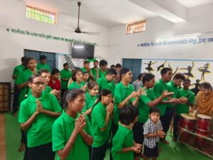 हरा-नीला यूनिफॉर्म विशेष बच्चों के चेहरों पर मुस्कान