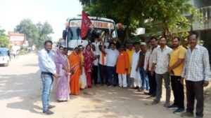 महापौर रामू रोहरा और धीवर समाज अध्यक्ष नर्मदा जगबेड़हा ने भगवा ध्वज दिखाकर किया तीर्थयात्रियों को रवाना