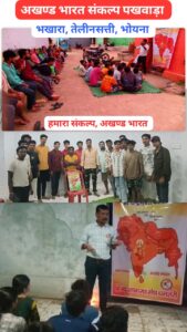 हिन्दू जागरण मंच धमतरी पूरे जिले के खंडों,नगरों,और गांवों में अखंड भारत संकल्प पखवाड़ा का आयोजन करेगा जिसका शुभारंभ तहसील भखारा ,ग्राम भोयना,तेलीनसती से किया । अखंड भारत के लिए सर्व समाज के लोगो को लेकर अखंड भारत पखवाड़ा का उद्देश्य ,विचार भारत पर विदेशी आक्रमण कब कब हुआ कैसे भारत की भूमि को विदेशी लोगों ने लुटा शिक्षा संस्कृति ,सभ्यता पर प्रहार , यहां के सारे खनिज संपदा, ऐश्वर्य को को किन लोगों ने क्षति पहुंचाया भारत की समृद्धशाली गौरव पूर्ण इतिहास को किन लोगों ने आहत किया हमारी जमीन हमसे कैसे छीन ली गई ये सभी बाते समाज के लोगो को जागरुक करने हिन्दू जागरण मंच के जिला संयोजक पुरूषोतम निषाद,सहसंयोजक डाकेशवर साहू,प्रतीक सोनी ,चित्रेश साहू ,जिला संपर्क आयाम,सूचना आयाम अनिमेष राजपूत,अमरदीप महाजन द्वारा अखंड भारत संकल्प किया जा रहा है जिसमें नगर भखारा से लुभेश पटेल, संजय सार्वा, छोटू माल, गुलशन गर्ग, दानेश्वर साहू, गणपत दिवान, मातृ शक्ति वार्ड नंबर 4,6,7 एवं संजू, राहुल, नंदकिशोर, सोमेश्वर, सागर, रुद्राक्ष समस्त सनातन सेना नगर भखारा ,भोयना से सुशील साहू,आदित्य,ओंकार मरकाम,गुलशन ध्रुव,तुषार ध्रुव,विनय मरकाम,योगेन्द्र विश्वकर्मा,मनीष साहू,देवीलाल साहू,भूपेंद्र नेताम वरुण ध्रुव,लखन साहू उमंग, डिगेश्वर,तेलीन सती से रितेश सिन्हा,हेमंत यादव,इंद्रजीत कुलदीप सिन्हा,निखिल देशलहरे ,डेमन ध्रुव उपस्थित थे.