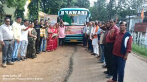 नगरी। मुख्यमंत्री विष्णुदेव साय की पहल से श्री राम लला दर्शन योजना साकार हो रही है ग्रामीण एवं शहरी इलाकों से 35 लोग अयोध्या धाम पहुंचकर भगवान श्री राम का दर्शन प्राप्त कर रहे है। इसी कड़ी में जनपद पंचायत नगरी के कई गांव के दर्शनार्थी अयोध्या जाने के लिए बस में सवार हो कर रेलवे स्टेशन रायपुर निकले है जिन्हें भाजपा जिला अध्यक्ष प्रकाश बैस ने हरी झंडी दिखा कर रवाना किया। इस दौरान जनपद पंचायत नगरी के उपाध्यक्ष हृदय साहू, नगरी नगर पंचायत अध्यक्ष बलजीत छाबड़ा, जनपद सीईओ रोहित बोरझा, पूर्व मंडल अध्यक्ष नगरी के मोहन नाहटा, जिला के पूर्व उपाध्यक्ष कमल डागा, बेलर मंडल के महामंत्री दीपक साहू ,नगरी नगर पंचायत के पार्षद श्रीमति चेलेश्वरी साहू ,राजा पवार, देव चरण ध्रुव, श्रीमती अंबिका ध्रुव, शंकर देव, श्रीमती अल्का साव, नरेश पटेल सहित कार्यकर्ता एवं कर्मचारी गण उपस्थित थे।