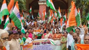 भाजपा ने निकाली तिरंगा यात्रा, बड़ी संख्या में भाजपाई और स्कूली छात्र छात्राये हुए शामिल