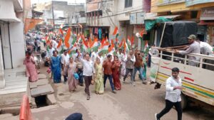 धमतरी शहर में निकाली गई एक हजार मीटर तिरंगे के साथ भव्य रैली