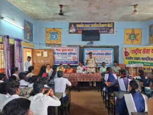 एसपी धमतरी के निर्देश पर यातायात प्रभारी उनि. खेमराज साहू एवं यातायात स्टॉफ द्वारा शासकीय उच्चतर माध्यमिक शाला, मोंहदी (मगरलोड) में नशा मुक्ति एवं यातायात सुरक्षा के संबंध में विशेष जागरूकता कार्यक्रम का आयोजन किया गया।कार्यक्रम के दौरान विद्यार्थियों को नशे के दुष्प्रभाव, साइबर सुरक्षा, सड़क सुरक्षा नियमों तथा हेलमेट एवं सीट बेल्ट के अनिवार्य उपयोग के बारे में विस्तार से बताया गया। बच्चों को समझाया गया कि नशा न केवल स्वास्थ्य के लिए हानिकारक है, बल्कि यह उनके भविष्य और परिवार के लिए भी गंभीर परिणाम ला सकता है।