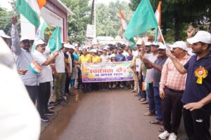धमतरी। स्वतंत्रता दिवस की पूर्व पर जिला प्रशासन द्वारा आयोजित भव्य स्वतंत्रता दौड़ में आज नगर पालिक निगम के महापौर रामू रोहरा जोश और उमंग के साथ शामिल हुए। तिरंगे झण्डे के साथ प्रतिभागियों के साथ दौड़ते हुए महापौर ने शहरवासियों में देशप्रेम का संदेश दिया। रामू रोहरा ने कहा कि, स्वतंत्रता हमें यूँ ही नहीं मिली है, इसके लिए हमारे वीर स्वतंत्रता सेनानियों ने अपने प्राण न्यौछावर किए। यह आज़ादी हमारा गौरव भी है और जि़म्मेदारी भी। इसे सुरक्षित रखना, संवारना और आने वाली पीढिय़ों तक पहुँचाना हर देशवासी का कर्तव्य है। आज की यह स्वतंत्रता दौड़ केवल खेल नहीं, बल्कि देशप्रेम और एकता का प्रतीक है। मैं चाहता हूँ कि हर नागरिक देश की प्रगति में अपनी भूमिका निभाए, ताकि भारत सदा विश्व में अग्रणी बना रहे। दौड़ के दौरान नगरवासी, स्कूली छात्र-छात्राएँ और सामाजिक संगठन हाथों में तिरंगा लहराते हुए भारत माता की जय और वंदे मातरम् के नारे लगा रहे थे। पूरा वातावरण देशभक्ति के गीतों और नारों से गूंज रहा था। महापौर रोहरा ने नगरवासियों को स्वतंत्रता दिवस की हार्दिक शुभकामनाएँ देते हुए सभी से देश की एकता, अखंडता और प्रगति में योगदान देने का आह्वान किया। स्वतंत्रता दौड़ के दौरान प्रमुख रुप से एसडीएम पीयूष तिवारी, भाजपा जिला महामंत्री महेन्द्र पंडित, महेन्द्र खण्डेलवाल, विजय साहू, तल्लीनपुरी गोस्वामी, अखिलेश सोनकर, कुलेश सोनी आदि उपस्थित थे।