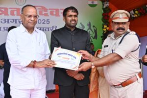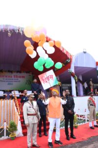 धमतरी 15 अगस्त 2025/ विधायक विधानसभा क्षेत्र कुरूद श्री अजय चंद्राकर ने आज 79 वें स्वाधीनता दिवस के मौक़े पर ज़िला मुख्यालय के डॉ. शोभाराम देवांगन शासकीय बालक उच्चतर माध्यमिक शाला के एकलव्य खेल मैदान पर ध्वजारोहण किया। ध्वजारोहण पश्चात विधायक ने परेड का निरीक्षण किया। ’प्रतिवर्ष की भांति इस बार भी स्वतंत्रता दिवस (15 अगस्त) गरिमामयी तरीके से आयोजित हुआ। बारिश के बीच समारोह को लेकर उत्साह में कोई कमी नहीं आयी। मुख्य अतिथि विधायक श्री अजय चंद्राकर ने ध्वजारोहण किया और परेड की सलामी ली। उन्होंने मुख्यमंत्री का जनता के नाम संदेश का वाचन किया। शांति स्वरूप के तौर पर आकाश में तीन रंगे ग़ुब्बारे छोड़े। उन्होंने परेड कमांडरों से परिचय प्राप्त किया। इस मौके पर कलेक्टर श्री अबिनाश मिश्रा पुलिस अधीक्षक श्री सूरजसिंह परिहार साथ थे।