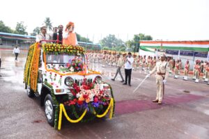 परेड का निरीक्षण किया और आकाश में तीन रंग के ग़ुब्बारे छोड़े