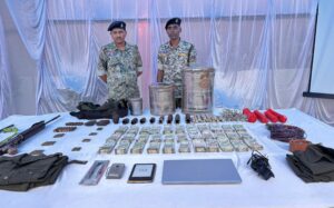 कैंप से 16 लाख 50 हजार रूपये नगद, 1 लैपटाप, इलेक्ट्रानिक डिवाईस सहित भारी मात्रा में नक्सल समाग्री बरामद किया गया।