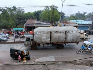 सही तरह से पैकिंग नहीं करने, फटे पुराने तिरपाल का उपयोग करने के कारण परिवहन के दौरान रास्ते भर उड़ता है भूसा, राखड़