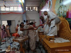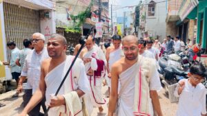 आज पर्वाधिराज पर्यूषण पर्व के अंतिम दिन प्रवचन में पहले कल्पसूत्र के मूलपाठ का वाँचन परम पूज्य प्रशम सागर जी महाराज साहेब एवं परम पूज्य योगवर्धन जी महाराज साहेब द्वारा किया गया। उसके बाद गुरु भगवन्तों की निश्रा में पूरा श्रीसंघ चैत्यपरिपाटी हेतु गया। चेत्यपरिपाटी में अपने शहर में जितने भी जिनालय होते है उन सभी जिनालय में जाकर पूरे श्रीसंघ के साथ परमात्मा का दर्शन ,वंदन किया जाता है। श्रीसंघ ने पहले पाश्र्वनाथ जिनालय, इतवारी बाजार में परमात्मा का दर्शन वंदन किया। उसके बाद पूरा श्रीसंघ जुलूस के रूप में बालकचौक स्थित श्री आदिश्वर जिनालय पहुंचा। वहां पर भी परमात्मा का दर्शन वंदन किया हुआ। फिर उसके बाद शांति कॉलोनी स्थित अभिनंदनस्वामी जिनालय श्रीसंघ पहुंचा। वहां पर भी गुरु भगवन्तों के साथ पूरे श्रीसंघ ने परमात्मा का दर्शन वंदन का लाभ लिया।