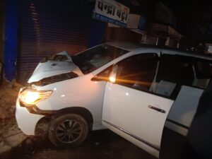 मवेशी से टकराकर बाइक सवार गंभीर रुप से घायल, अनियंत्रित इनोवा डिवायडर से टकराकर जा घुसी दुकान में