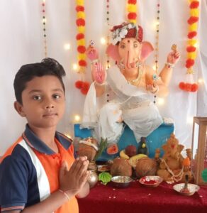 वंदेमातरम स्कूल के छात्र द्वारा बनाई गई गोबर से भगवान गणेश जी की प्रतिमा
